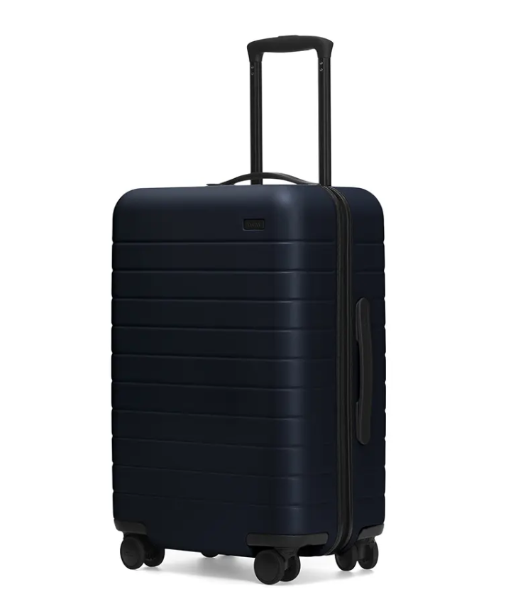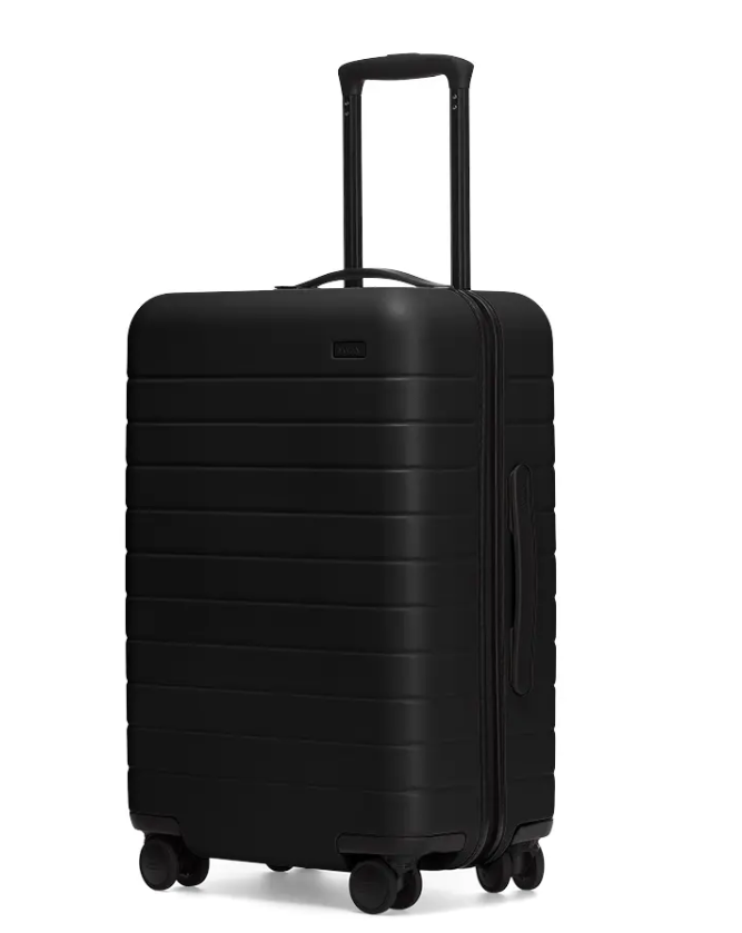 Our Classy suitcase is lightweight and sized to fit in the overhead bin of most major airlines. The Classy suitcase comes in 4 different colors, with a hard shell and 360° spinner wheels.